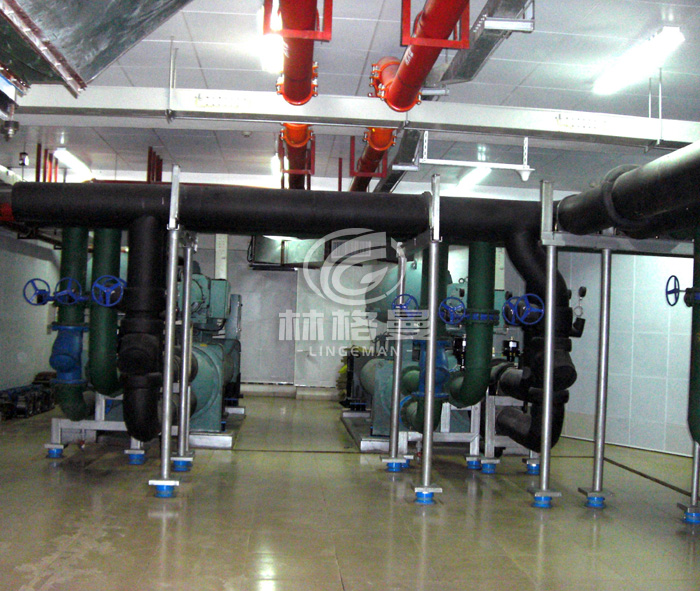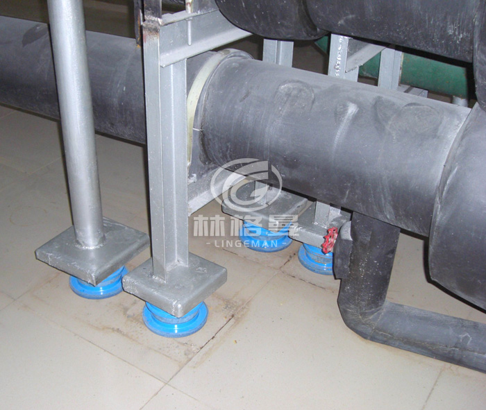 這樣可使空調(diào)主機(jī)和水泵運(yùn)行時(shí)產(chǎn)生振動(dòng)源消除,對(duì)振動(dòng)產(chǎn)生的噪聲起到有效解決。